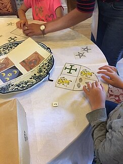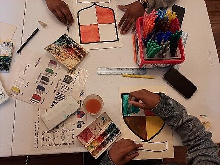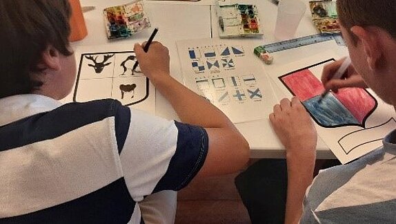 Les plus grands (plus de 8 ans) ont découvert l’univers héraldique. Après une présentation historique du Domaine, ils sont allés rechercher les blasons des différents propriétaires du Domaine, avant de créer leur propre blason.